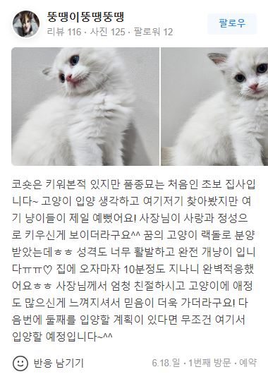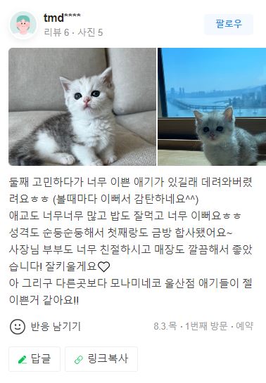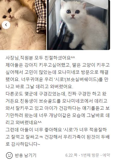 건강한 아가를 입양해간 고객님의 리얼후기!